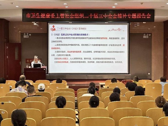 为深入学习宣传党的二十届三中全会精神,9月26日,中华医学会北京分会秘书处举办学习贯彻党的二十届三中全会精神专题报告会,邀请首都师范大学马克思主义学院李宏伟教授作专题报告。来自市卫生健康委主管的50余家社会组织的60余名党员代表和医学会秘书处全体职工参会。